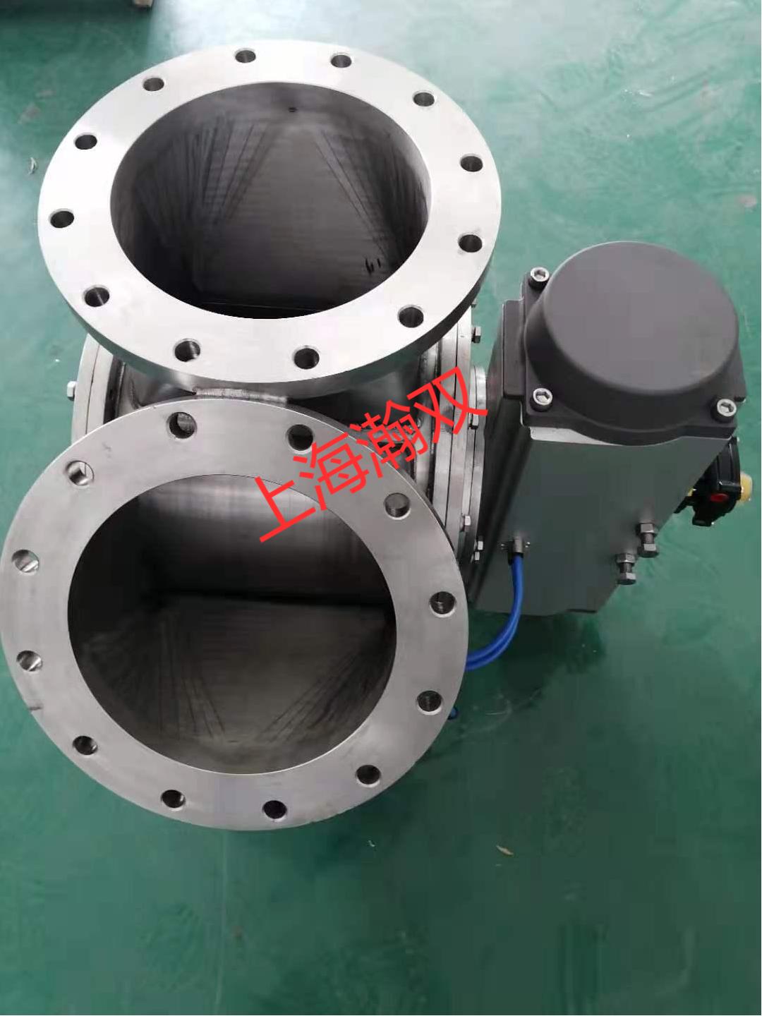 三通換向器俗稱三通換向閥,分向閥,是應用于固體物料(粉沫、顆粒物料、粉粒混合物、片狀等)輸送系統(tǒng)中用于切換管道中物料流向的專用設(shè)備,完全密封的結(jié)構(gòu)可適用于室外環(huán)境?! ∽ⅲ喝〒Q向閥的角度與法蘭尺寸可以按要求定制